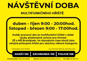 Oznamujeme občanům, že došlo ke změně návštěvní doby multifunkčního hřiště u ZŠ.