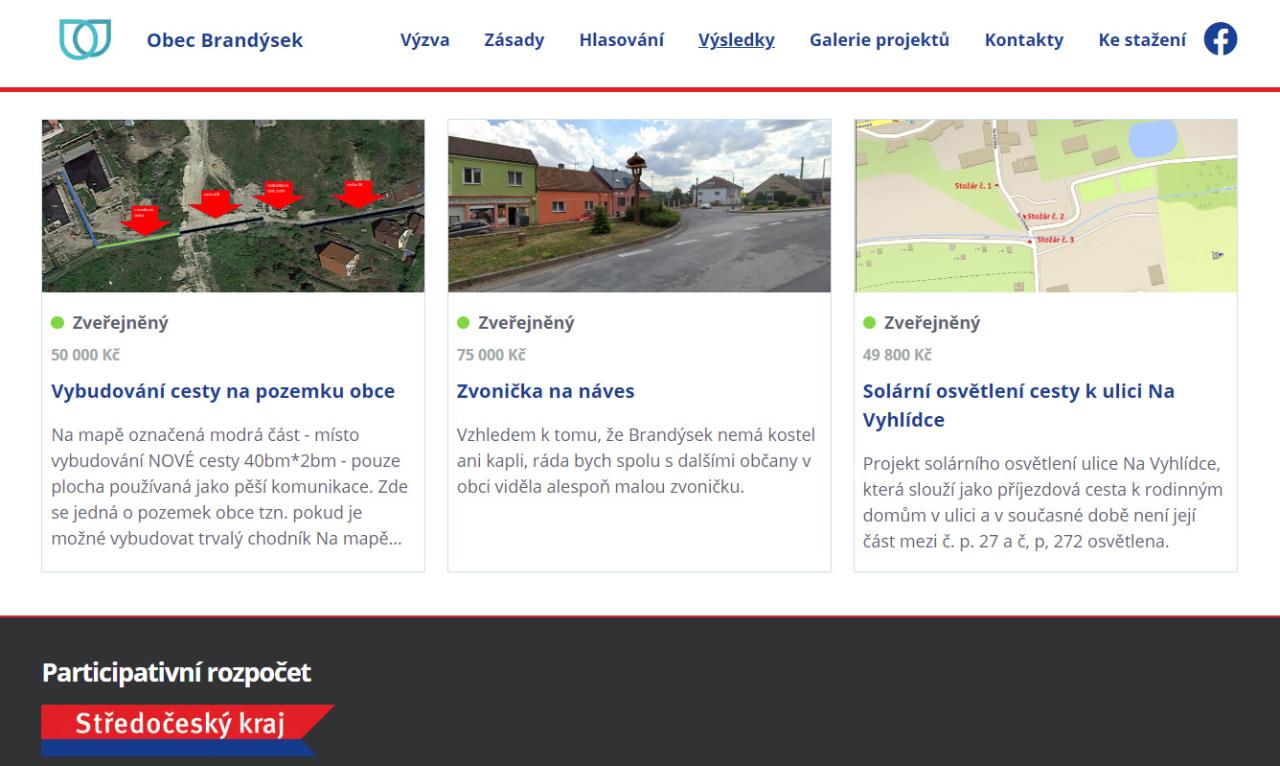 Na webu participativního rozpočtu obce Brandýsek bylo dnes spuštěno veřejné hlasování. Hlasování bude ukončeno 1.5.2024. Hlasovat může každá fyzická osoba, která má trvalý pobyt v Brandýsku a dosáhla věku 18 let. https://mojeobec.kr-stredocesky.cz/portal/paroz/brandysek/hlasovani