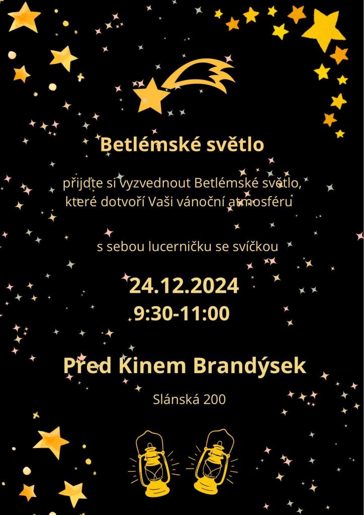 Přijďte si vyzvednout Betlémské světlo, které dotvoří Vaši vánoční atmosféru. Lucerničku se svíčkou s sebou.